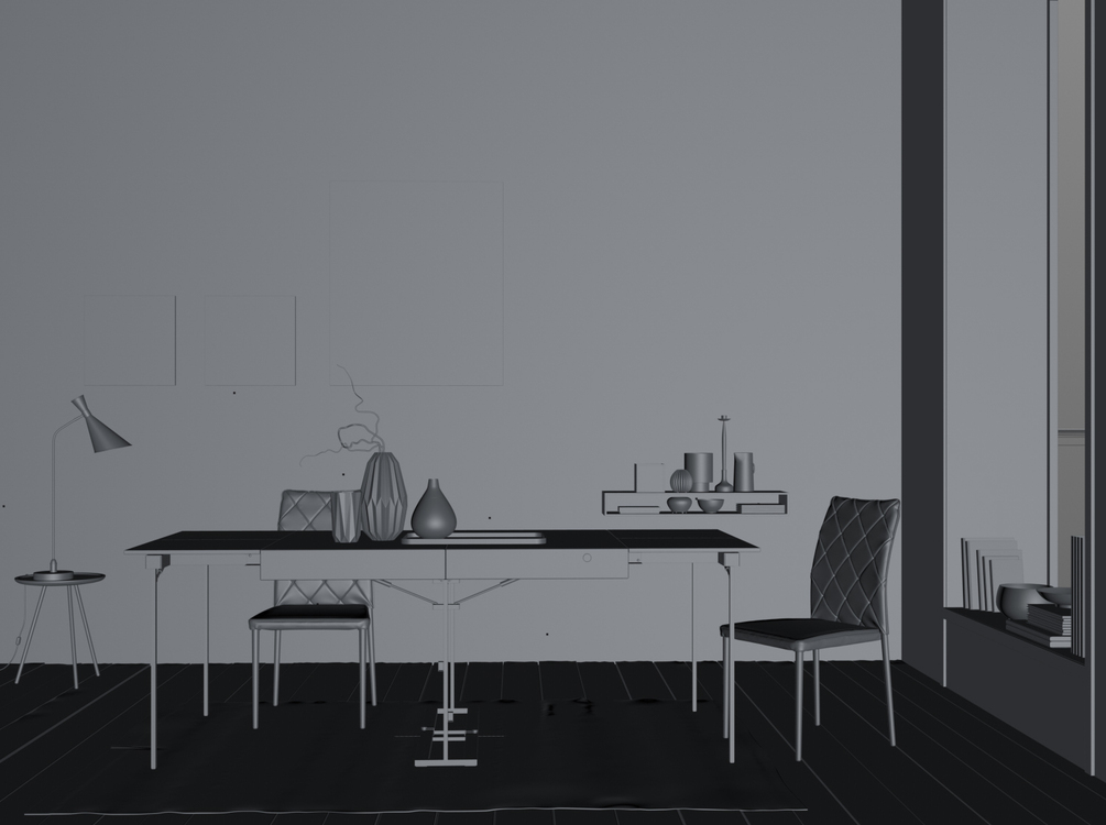 This is a fully textured interior scene with natural light setup, ready to render with Cinema 4D + V-Ray / Corona and 3dsMax + Corona, inspired by a Studio Gabriotti original photo. Inside the zip file you'll find 38 materials, 64 textures, Skylight setup + 2 Corona lights, Camera settings, Corona render settings and VFB settings. In the final PSD file you can see the post-production process with adjustment layers.