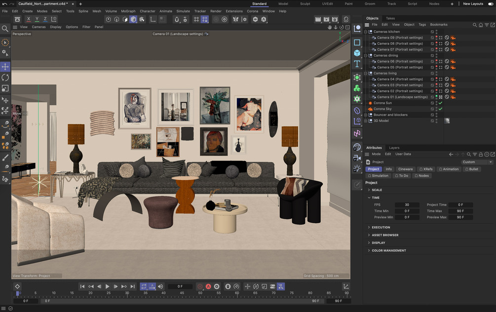 · 9 Takes to easily change Camera, Render settings and furniture arrangement
