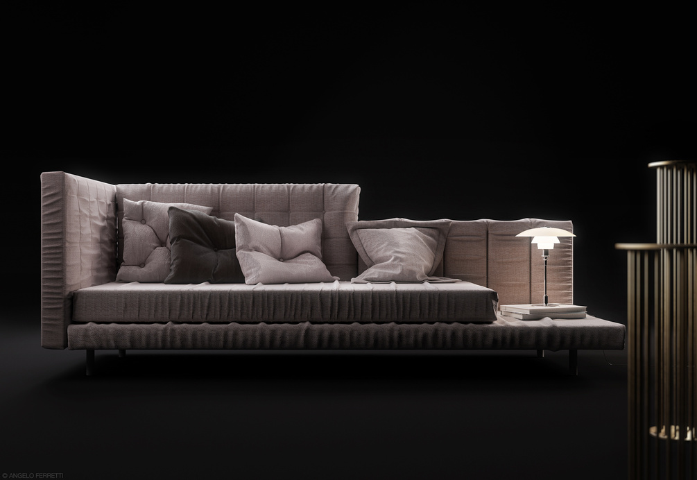 This is a fully textured super high quality 3D model of Alvar sofa by Bonaldo, placed in a studio light setup ready to render with Cinema 4D + V-RAYforC4D 3.4/3.7. In this set you find also other 3D models: Ritmospaziale tables by Studiopepe, Louis Poulsen PH Glass Lamp. Inside the zip file you'll find 14 materials, 9 HQ textures (3K), advanced studio light setup, 6 cameras settings with depth of field, V-RAYforC4D 3.4/3.7 render settings (Progressive and Bucket). Including OBJ and FBX 3D model export file with UVW map.