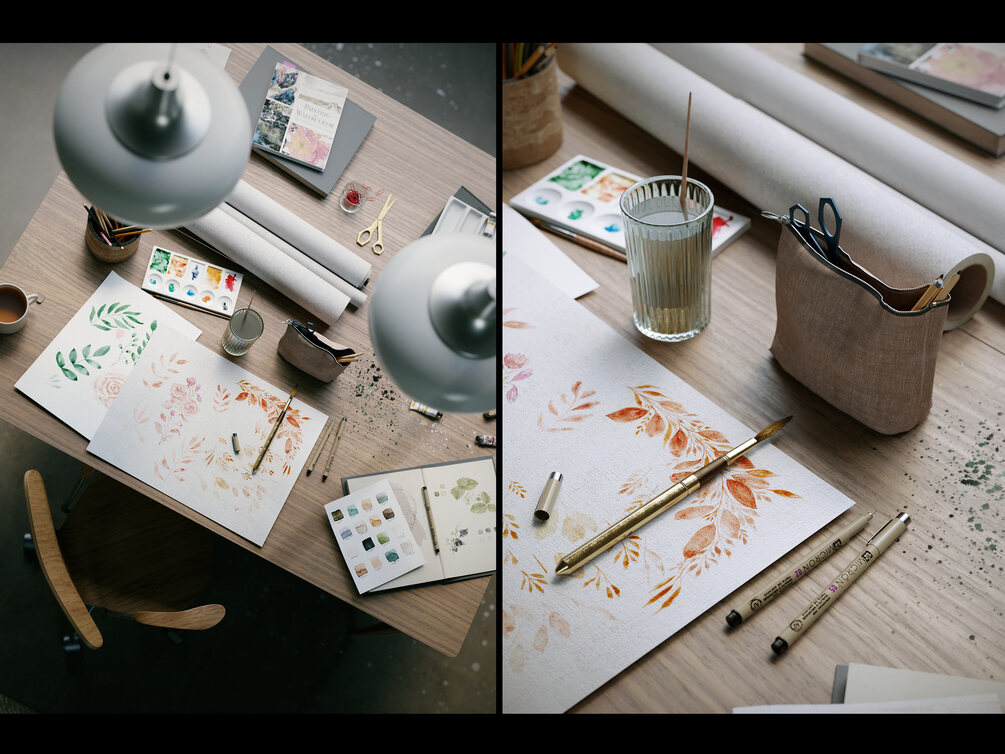 Watercolor room interior scene is now updated for Cinema 4D 2025 and Corona 12 including Physical materials (no more Legacy materials), renewed light setup with Corona Sky and Corona Sun setup for a more natural result, new VFB setup for a better look (the renders need no post production with Photoshop), a few improvements to the 3d model and texture projections, new Corona shaders and tools involved (Multishader, Decals), an easier file structure (groups and names), faster render times.